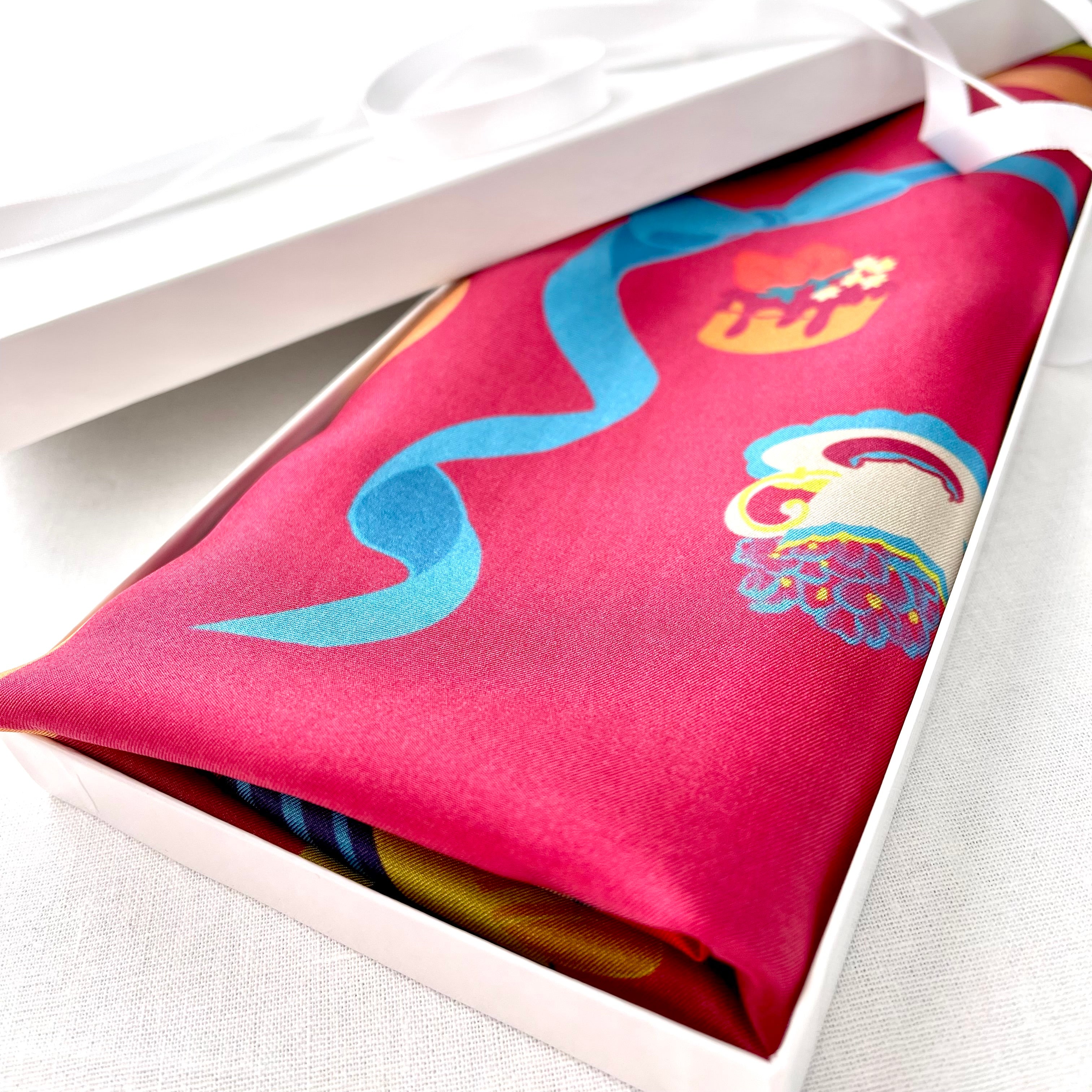 Designed for luxury gifting, private clients, and curated boutique selections, this piece brings art, fashion, and femininity together in a way that feels personal and timeless. The fluid drape, soft sheen, and lightweight feel make it suitable for styling around the neck, on a handbag, or as an elegant display accent inside hotel suites and VIP gift programs.