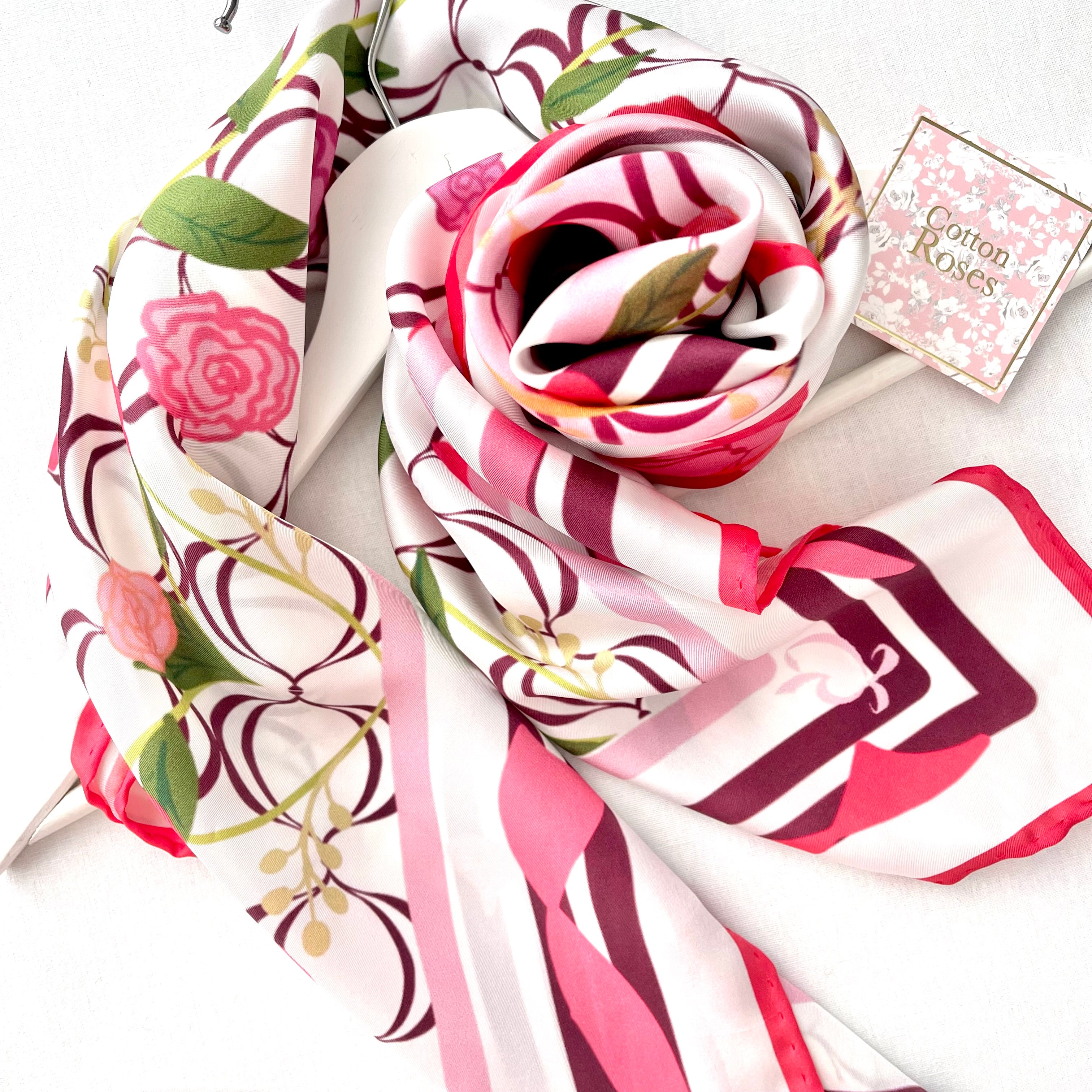 - Explore the Cotton Roses catalogue and choose the scarf design you love.