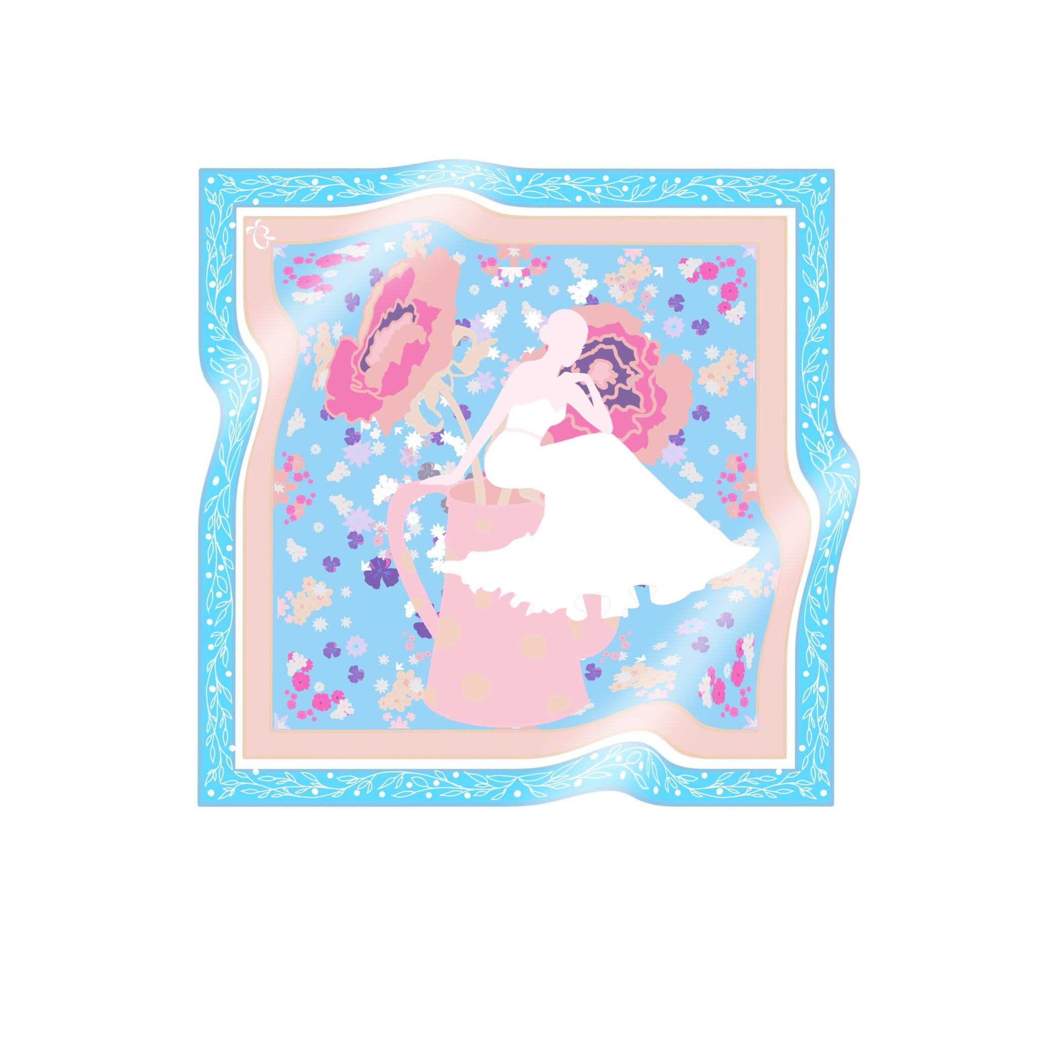 The scarf is made from 100% silk, chosen for its smooth feel, gentle drape, and natural sheen. It measures 34 x 34 inches, making it versatile to wear around the neck, as a headscarf, or styled as an accent. The hand-rolled edges add a refined, couture finish and reflect careful, traditional craftsmanship.