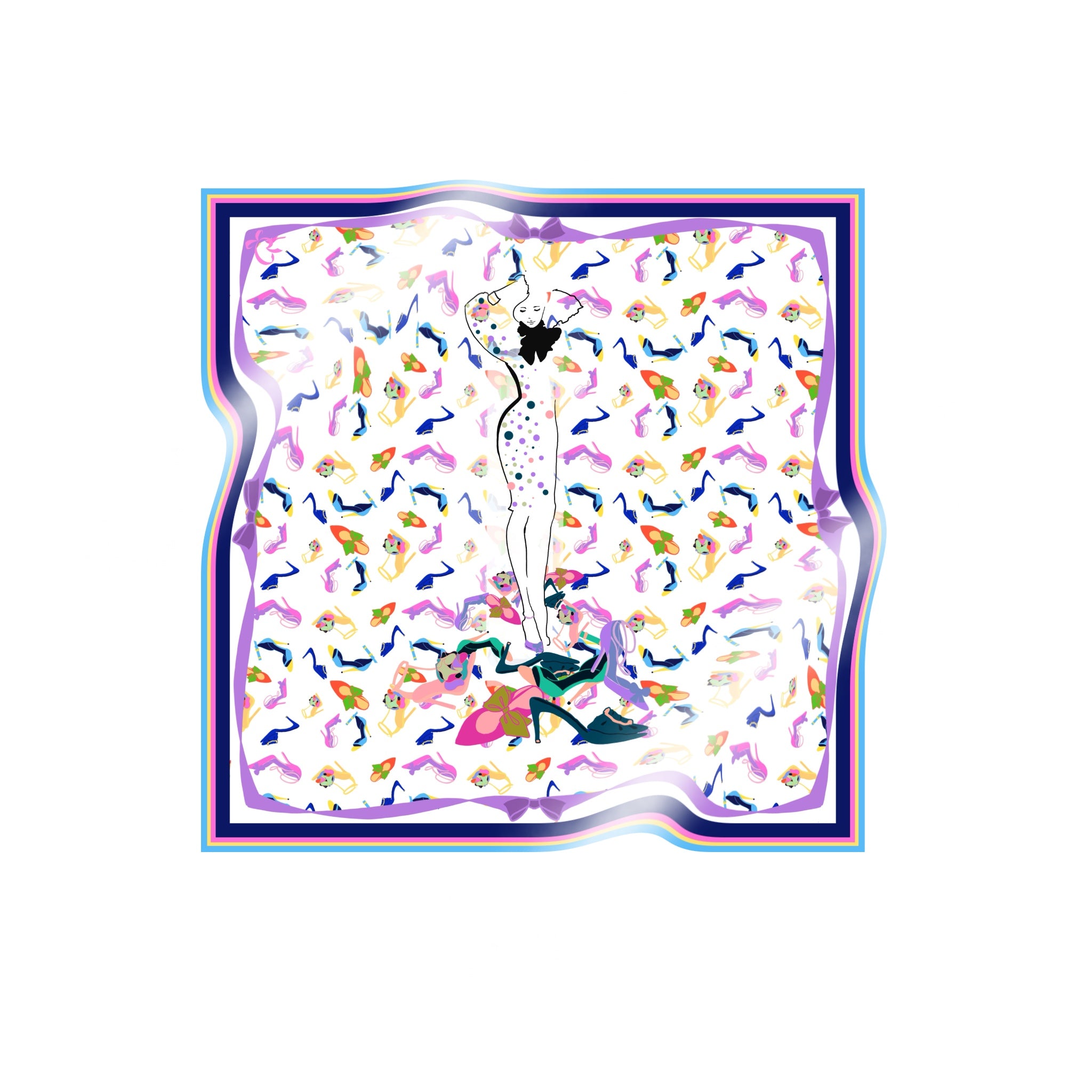 The scarf is made from 100% silk, chosen for its smooth feel, gentle drape, and natural sheen. It measures 34 x 34 inches, making it versatile to wear around the neck, as a headscarf, or styled as an accent. The hand-rolled edges add a refined, couture finish and reflect careful, traditional craftsmanship.