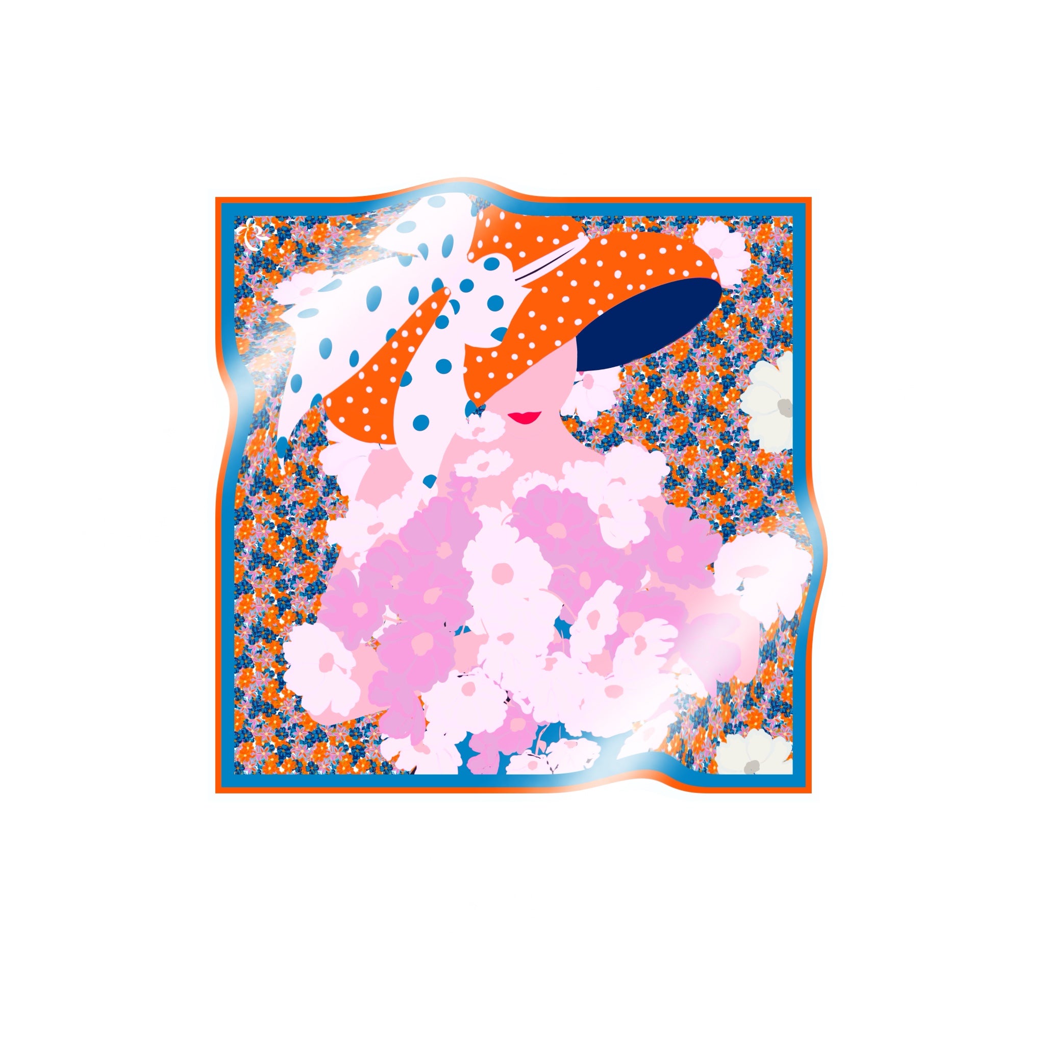 The scarf is made from 100% silk, chosen for its smooth feel, gentle drape, and natural sheen. It measures 34 x 34 inches, making it versatile to wear around the neck, as a headscarf, or styled as an accent. The hand-rolled edges add a refined, couture finish and reflect careful, traditional craftsmanship.